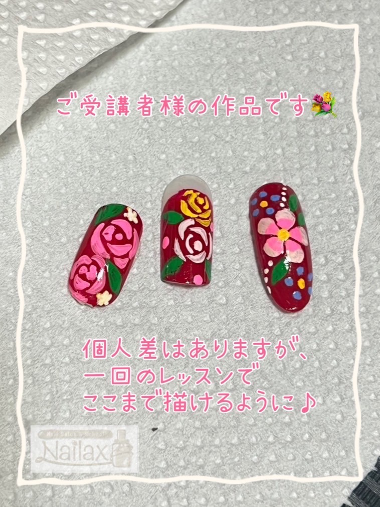 当校は月一のご趣味の習い事やセルフネイラーさんからプロのネイリストを目指したいかたまで、様々なかたがご受講にいらしております!
