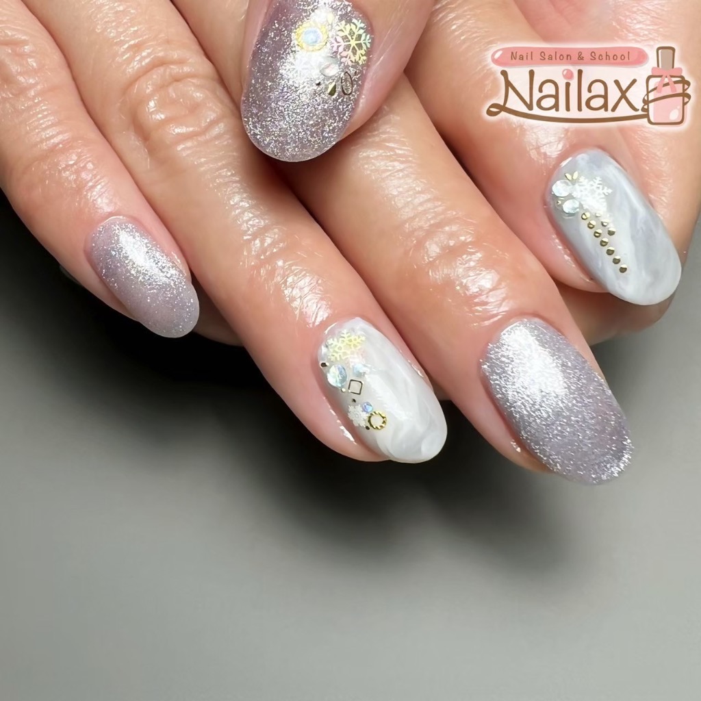 本日のお客様ネイルは、マグネット×マーブルネイルです💅❄️
