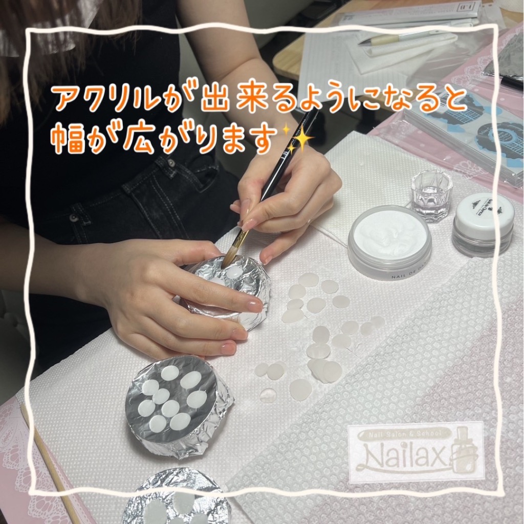 今はアクリル、ジェル、チップ、いろんなやり方が増えてきましたが、アクリルの取り扱いができるかどうかでいろんな幅が広がってくるのではないでしょうか。