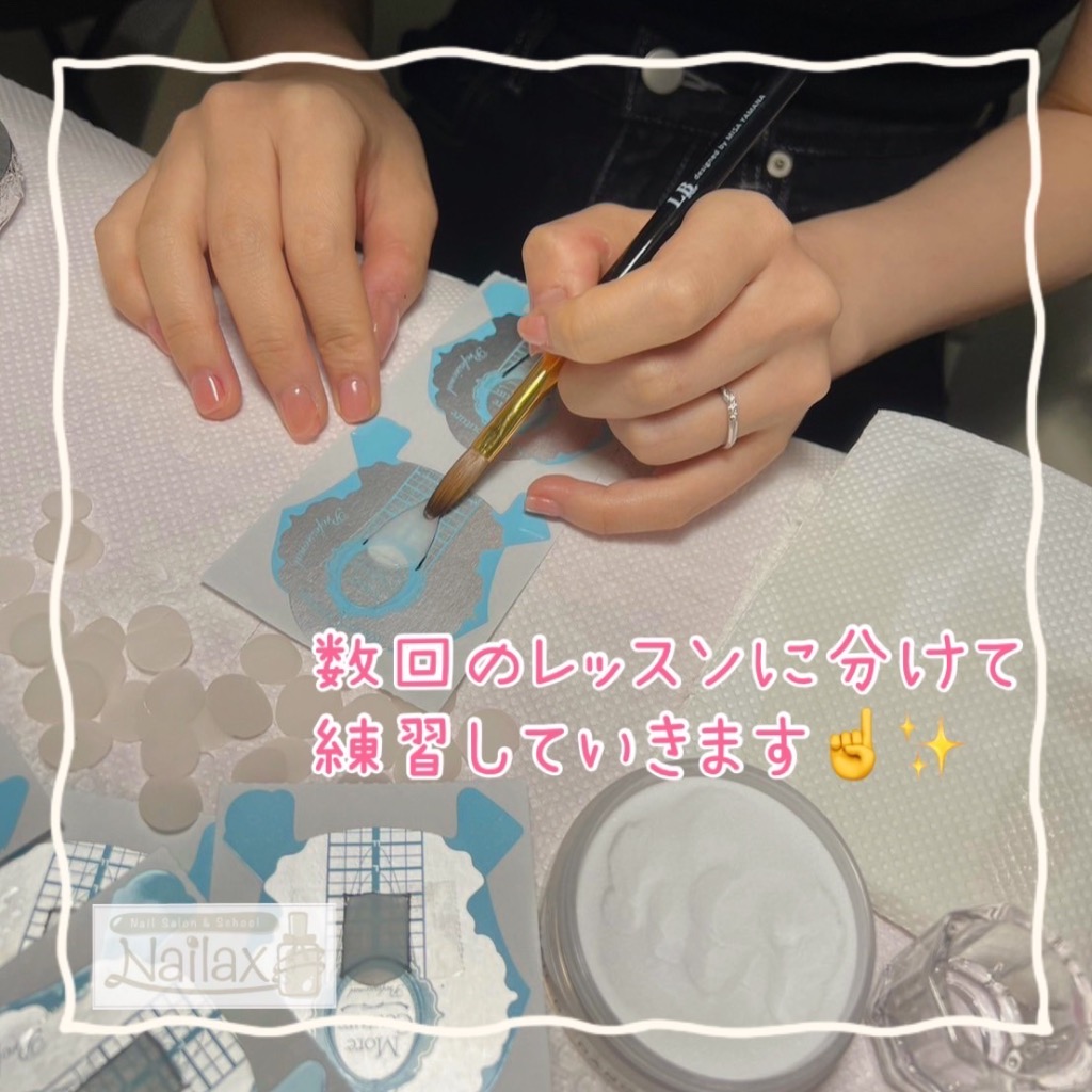 1級内容と同じアクリルの取り扱いはジェルやポリッシュとは全く異なるのでコツを掴むのが難しいですが、できるようになるとすごく楽しいですよ!