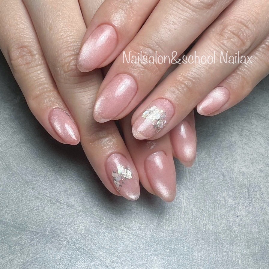 シンプルの中にも華やかさがあり、オフィスネイルにもおすすめのデザインです。