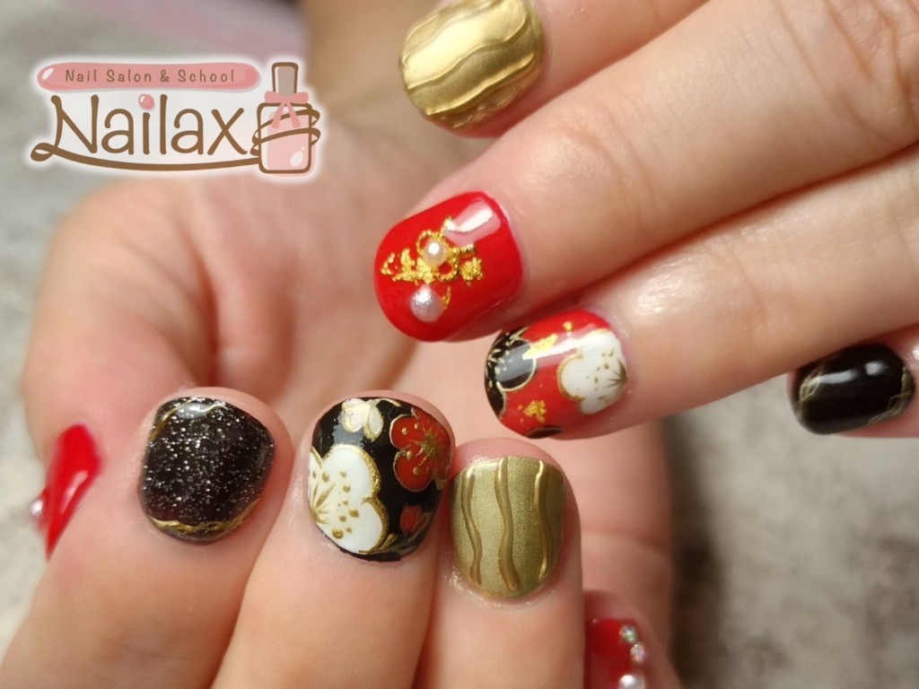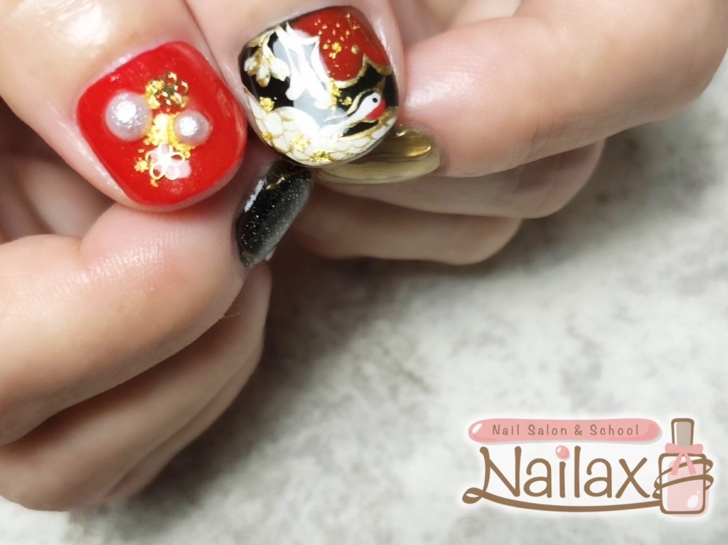 ニュージーランド🇳🇿でのコーラスのオリンピックに出場されるとの事で、今回も『和』のネイルを赤✖️黒で。