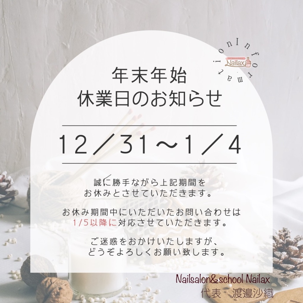 いつもNailsalon&school nailaxをご愛顧頂きまして誠にありがとうございます。