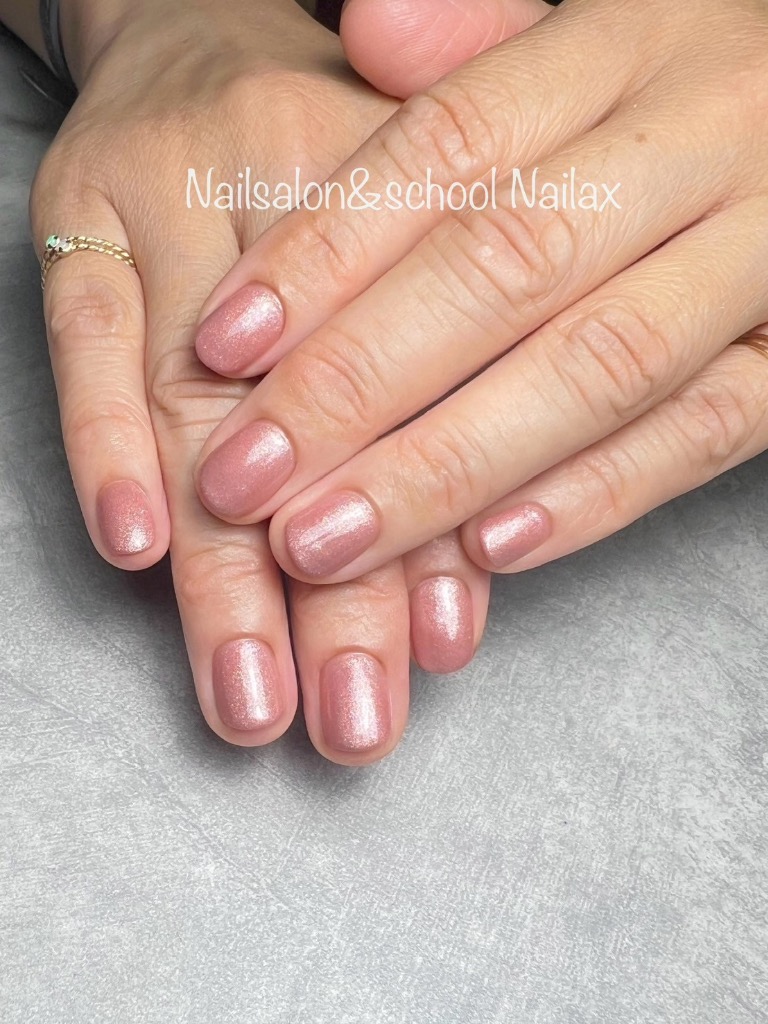 今回のお客様ネイルは、やわらかいピンクカラーに繊細なラメが入った上品可愛いワンカラー💖