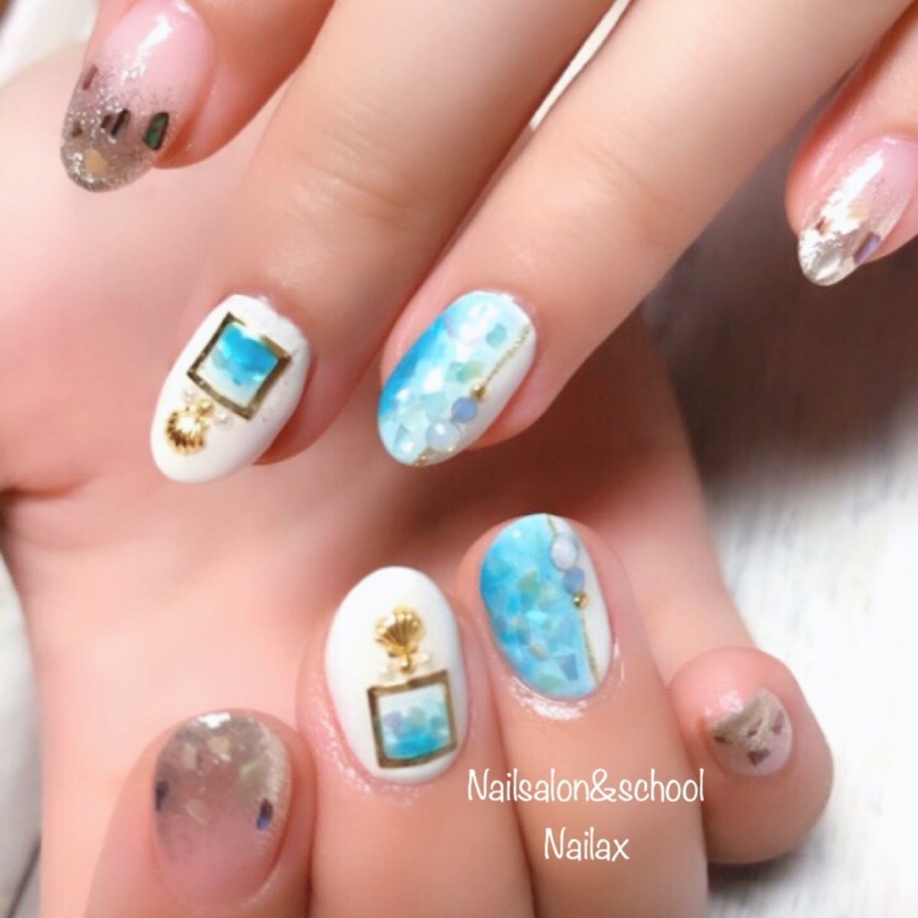 お仕事柄ネイルの色味は限られているけれど夏ネイルを楽しみたい!