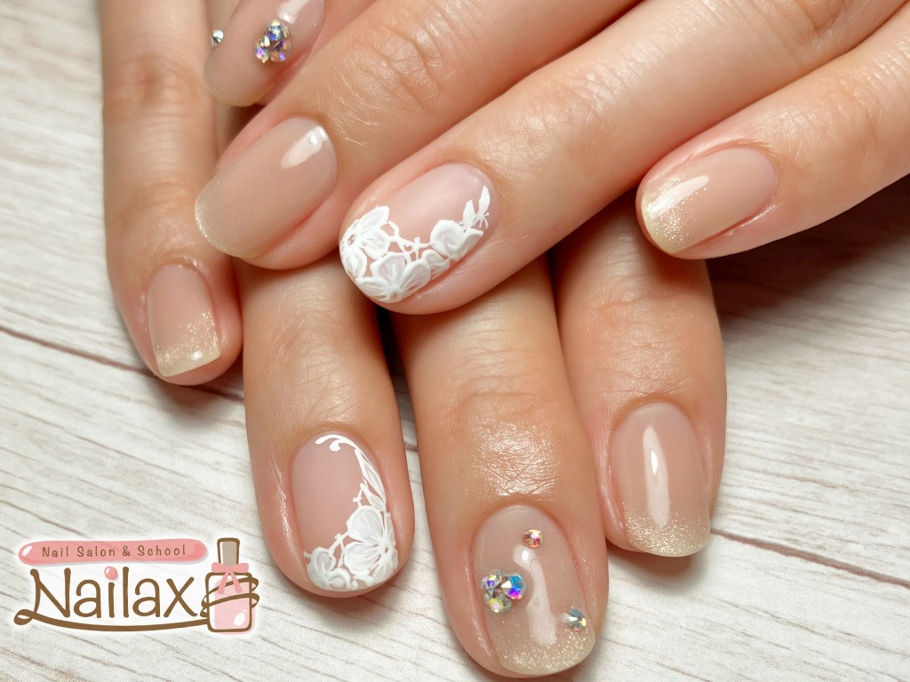 繊細なレースアートでお爪が一気に華やかになり、うっとり見とれてしまうほど。