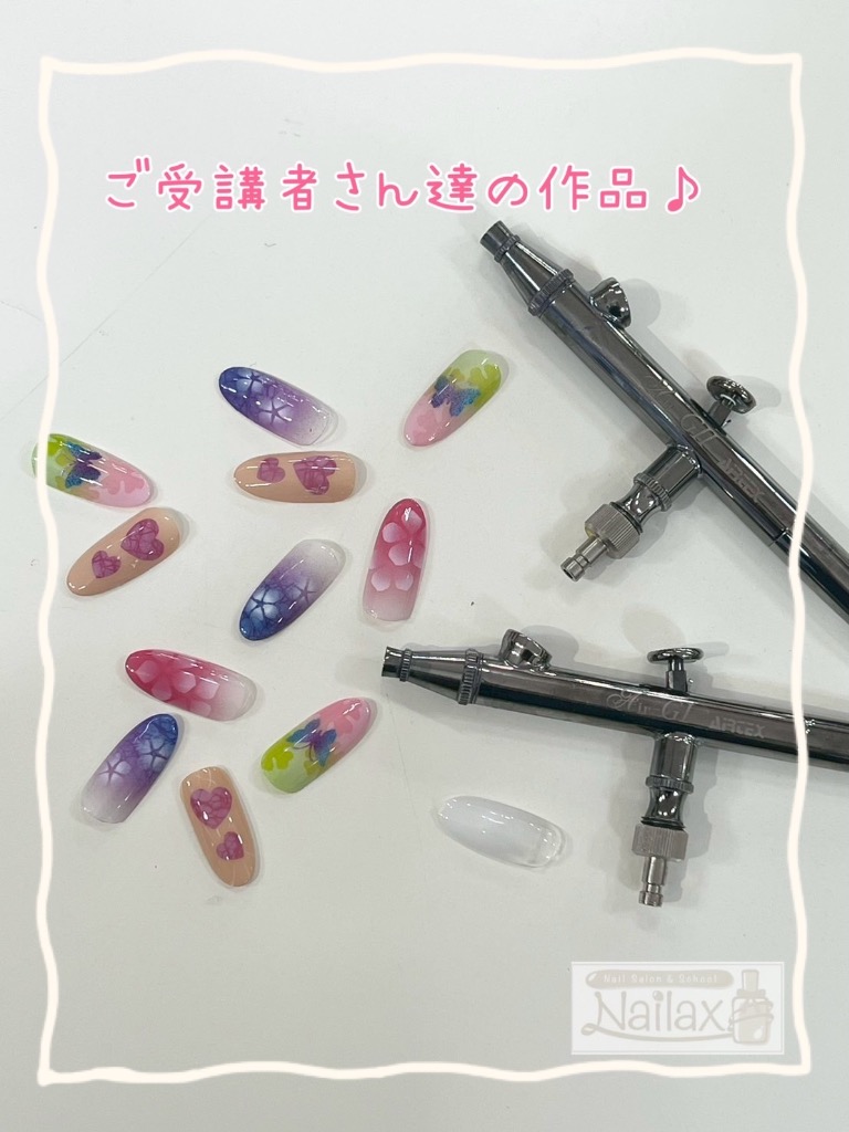 エアジェルの使用方法をはじめとした基礎知識、グラデーションやマスキングを使用した簡単なアートや技法を学べるセミナーです!